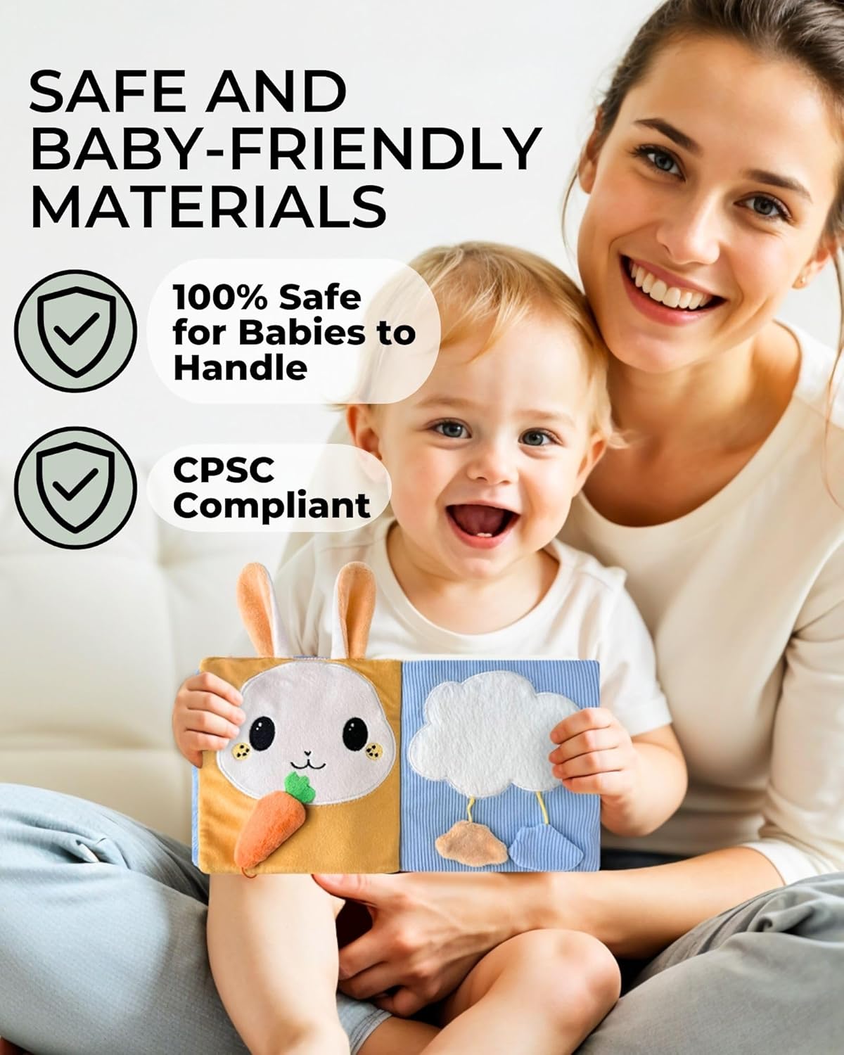 - Materiales 100% seguros, aptos para bebés: telas fuertemente cosidas y texturas suaves para que los bebés lo sostengan, aprieten y jueguen. Nuestros libros suaves para bebés de 0 a 6 meses garantizan 100% tranquilidad.